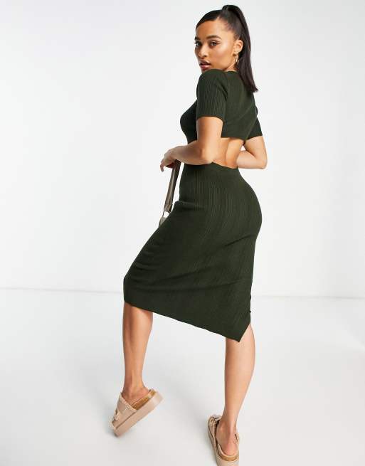 4th & Reckless - Strikket midikjole i kaki med åben ryg-detalje