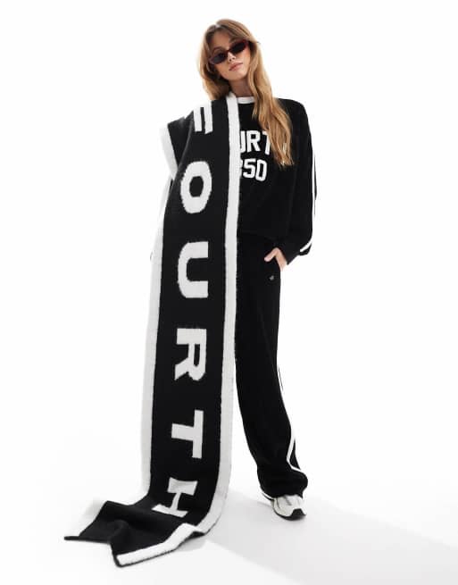 4th & Reckless x Felicia Wedin - Sort sæt med sweatshirt, joggingbukser og tørklæde med '1850'-logo og sidestribe i velour