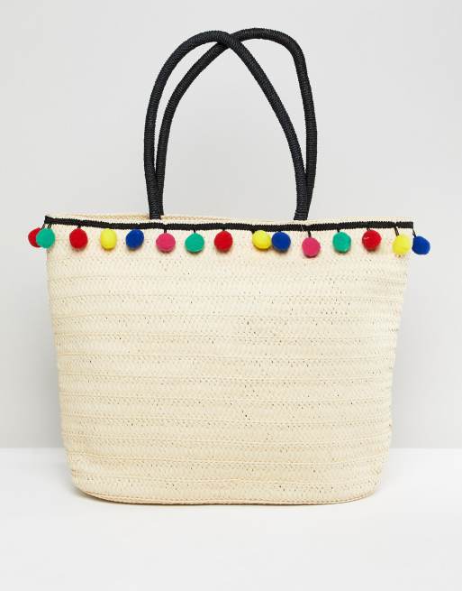 Stråtaske til stranden med 7 pomponer i kanten