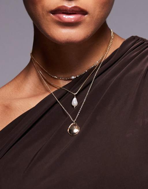 8 Other Reasons - Flerkædet halskæde med cirkel- og perlevedhæng i 18 karat guldbelægning