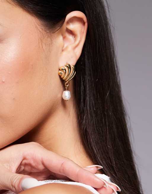 8 Other Reasons - Ørestikkere med perlevedhæng og tekstur i 18 karat guldbelægning