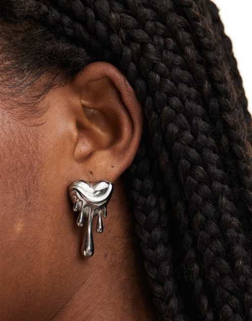 8 Other Reasons - Ørestikkere med rhodiumbelægning og dryppende hjertedesign i rustfrit stål