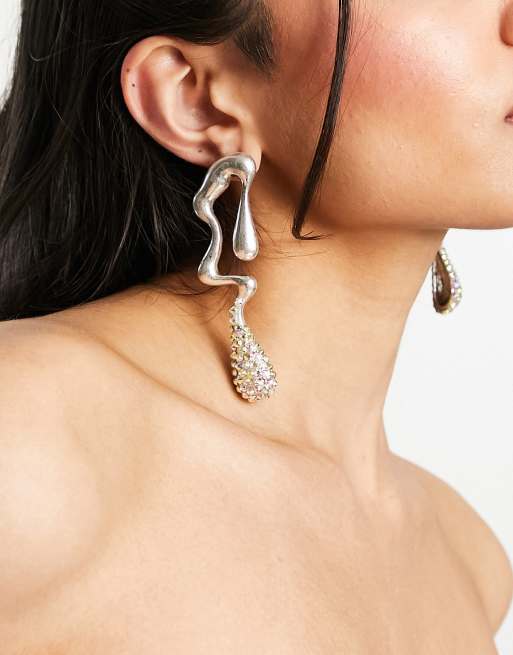 8 Other Reasons x ASOS - Luxe - Sølvfarvede øreringe med krystalfarvede rhinsten - Kun hos ASOS