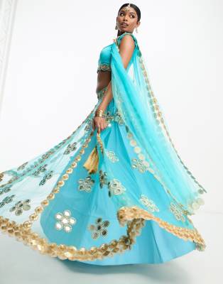 A Star Is Born - Turkis udsmykket lehenga-skjorte og dupatta-tørklæde - Del af sæt