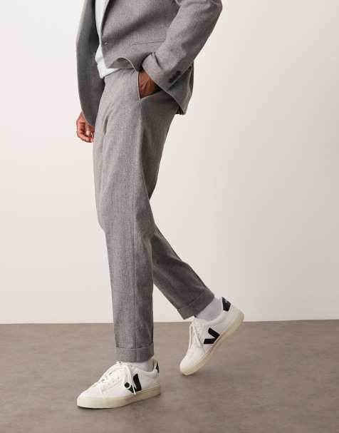 ASOS DESIGN - Grå og elegante bukser med mikrotern og lige ben samt elastisk linning - Del af sæt
