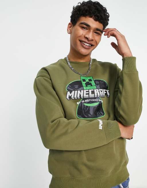 AAPE By A Bathing Ape x Minecraft - Khakigrøn sweatshirt med logo