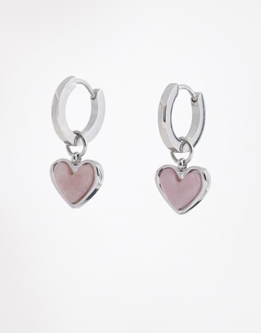 Abbott Lyon - Sølvfarvede tætsiddende hoop-øreringe med lyserødt opalhjerte