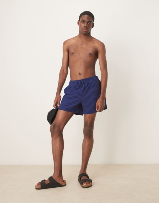 Abercrombie & Fitch - 5-tommers marineblå badeshorts i bæk-og-bølge-stof