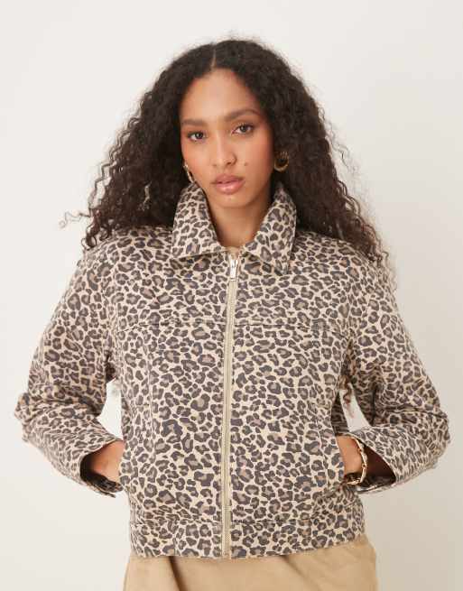 Abercrombie & Fitch - Arbejdstøj - Denimjakke med lynlås foran og leopardprint