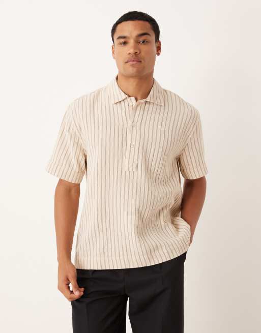 Abercrombie & Fitch - Beige cropped skjorte med korte ærmer i poplin