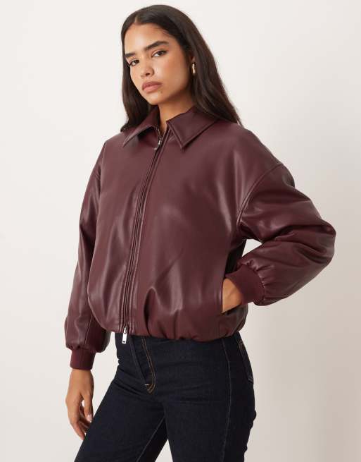 Abercrombie & Fitch - Bordeauxrød bomber-frakke i imiteret læder med puf i sømkanten