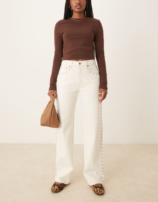 Abercrombie & Fitch - Curve Love - Ecrufarvede afslappede jeans med høj talje og nitter i 90'er-stil