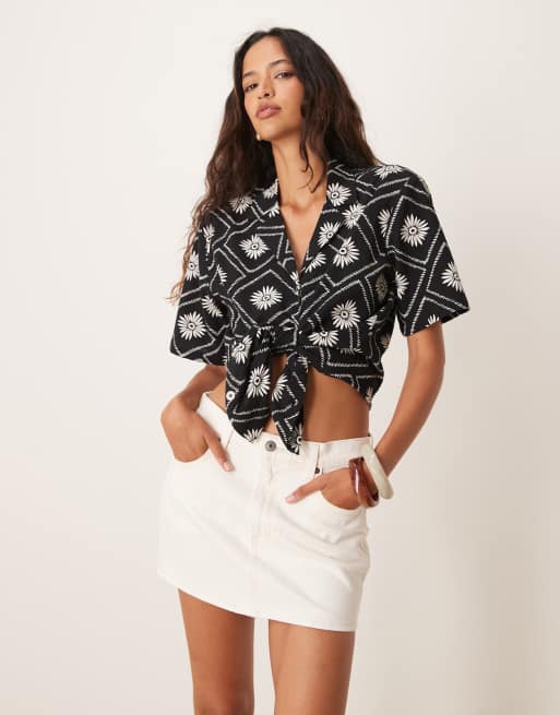 Abercrombie & Fitch - Ecrufarvet mininederdel i denim
