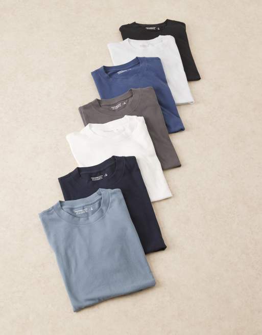 Abercrombie & Fitch - Essentials - Pakke med 7 T-shirts i sort/blå/hvid