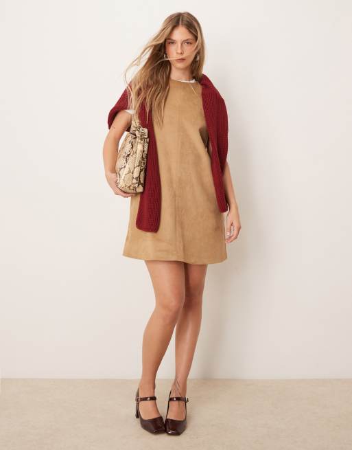 Abercrombie & Fitch - Gyldenbrun ærmeløs blazer-kjole i imiteret ruskind