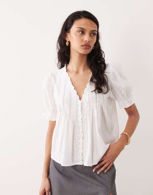Abercrombie & Fitch - Hvid kortærmet boho bluse