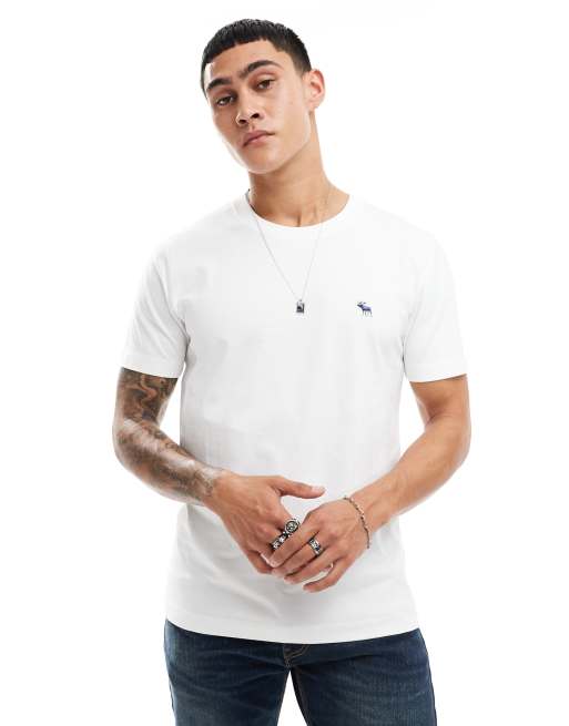 Abercrombie & Fitch - Hvid T-shirt med hævet ikonlogo