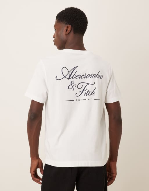 Abercrombie & Fitch - Hvid T-shirt med tekstlogo på ryggen