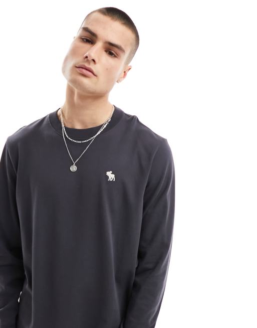 Abercrombie & Fitch - Koksgrå langærmet top i kraftigt stof med ikonlogo
