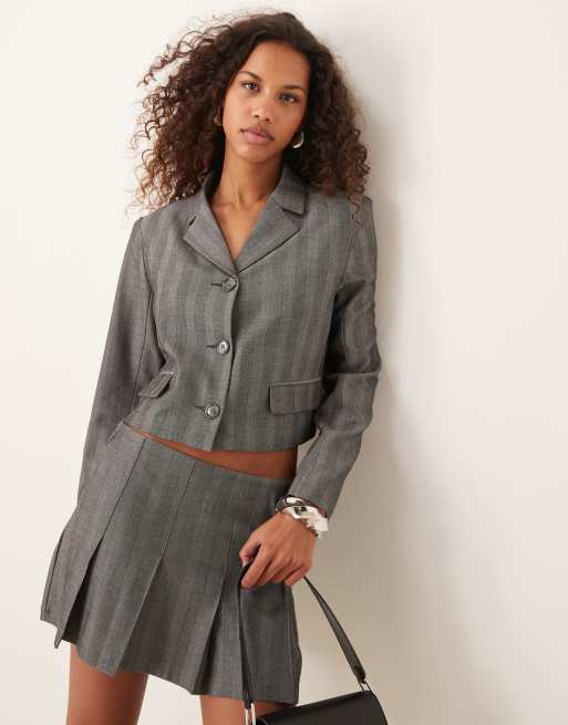 Abercrombie & Fitch - Kort og grå blazer med striber og sildebensmønster - Del af sæt