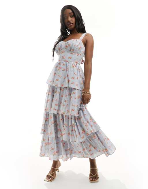 Abercrombie & Fitch - Lagdelt og blå maxikjole med rygsnører og blomstermønster