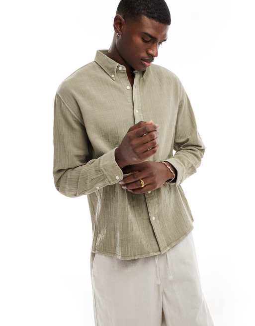 Abercrombie & Fitch - Løstsiddende og oversized skjorte i mellemgrøn
