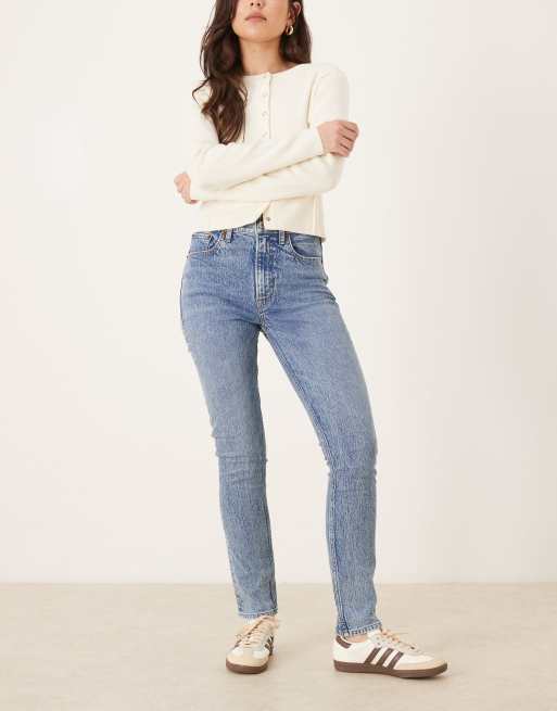 Abercrombie & Fitch - Mellemblå højtaljede skinny-jeans