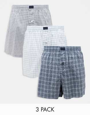 Abercrombie & Fitch - Pakke med 3 par vævede boksershorts i blå nuancer med tern