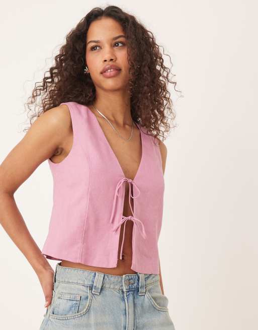 Abercrombie & Fitch - Pink top med bindebånd foran