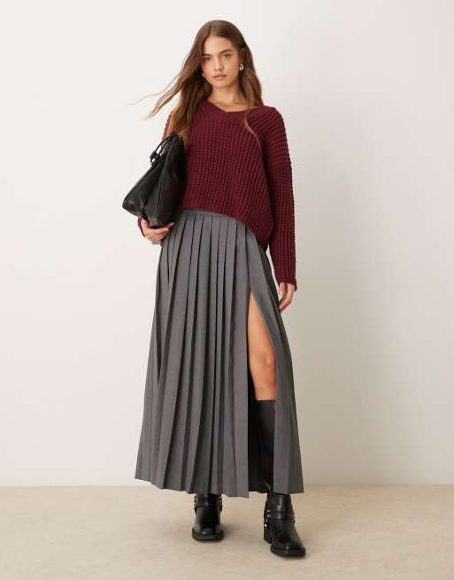 Abercrombie & Fitch - Plisseret og grå maxinederdel med mellemhøj talje og sideslids