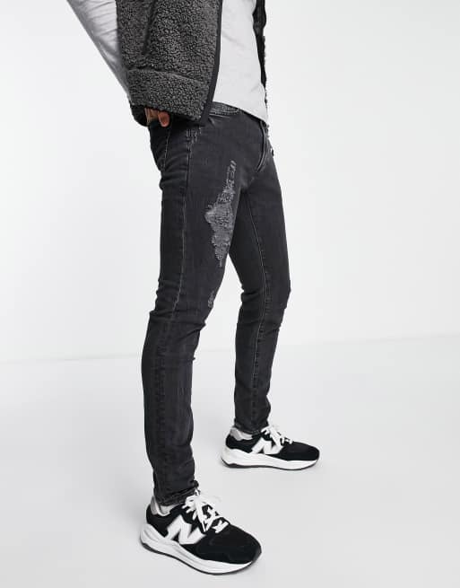 Abercrombie & Fitch - Super skinny-jeans i forvasket sort med slidt finish