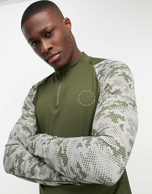 A Better Life Exists Active - Kakigrøn T-shirt med halv lynlås og lange ærmer