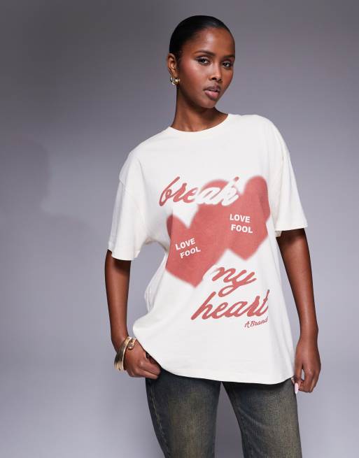 Abrand - Oversized råhvid T-shirt med 'Break My Heart'-print