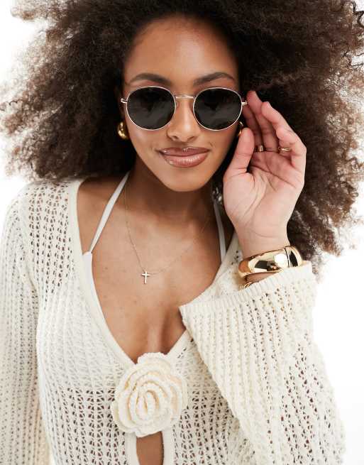 Accessorize - Guldfarvede runde solbriller i metal