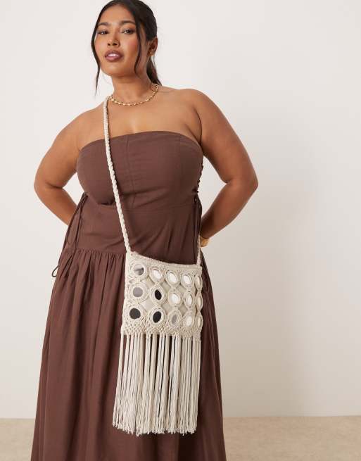 Accessorize - Hvid crossbody-taske med spejldetaljer og frynser