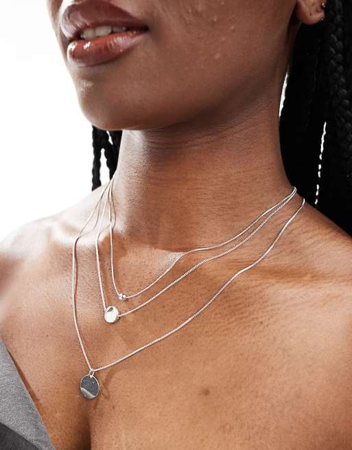 Accessorize - Lagdelt og sølvfarvet halskæde med skivevedhæng