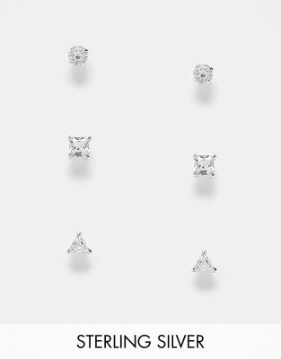 Accessorize - Pakke med 3 par ørestikkere med imiterede ædelsten i sterlingsølv