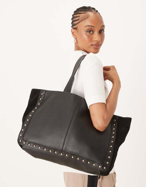 Accessorize - Premium - Sort tote-taske med nittedetaljer i læder og ruskind