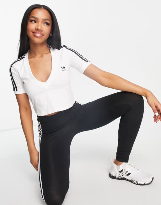 adidas Originals - Adicolour - Hvid croptop med V-hals og 3 striber