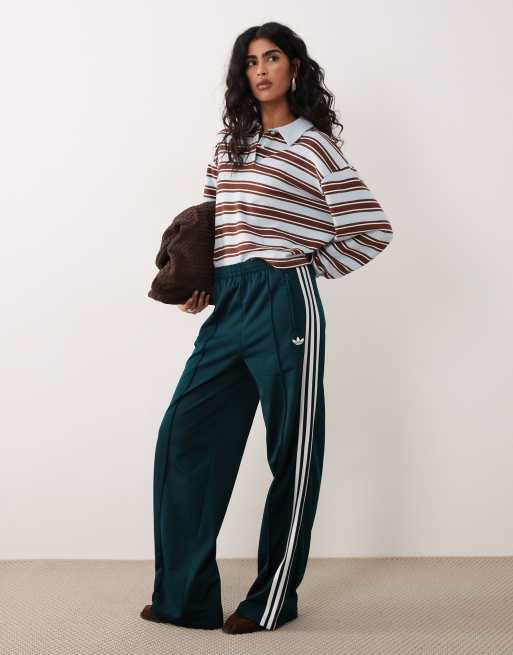 adidas Originals - Firebird - Løstsiddende blågrønne træningsbukser med råhvide striber