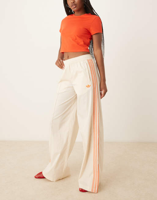 adidas Originals - Råhvide hæklede træningsbukser med 3 striber