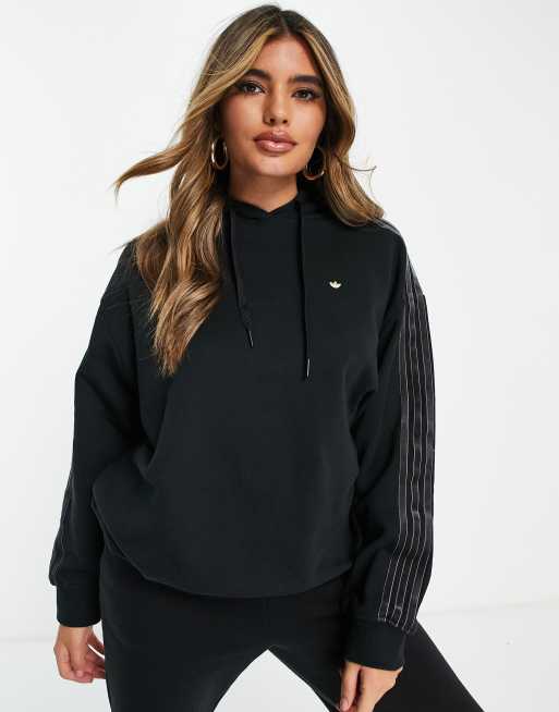 adidas Originals - Sort hættetrøje med tre tonede striber