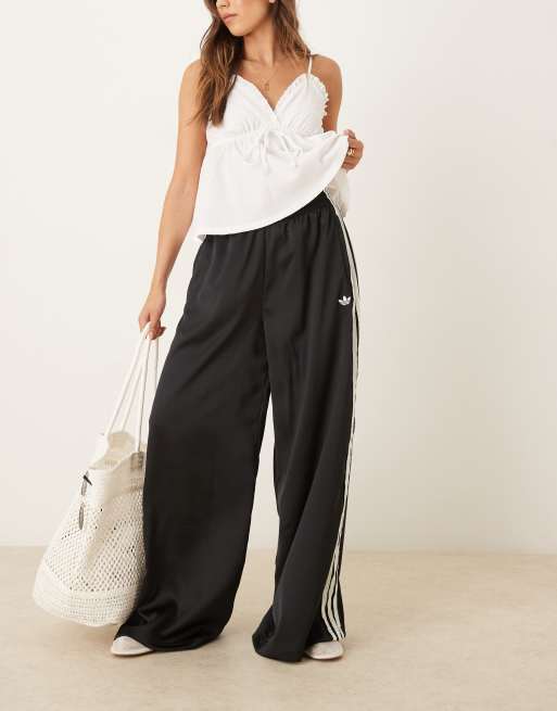 adidas Originals - Sorte joggingbukser med vide ben og 3 flæsestriber i satin