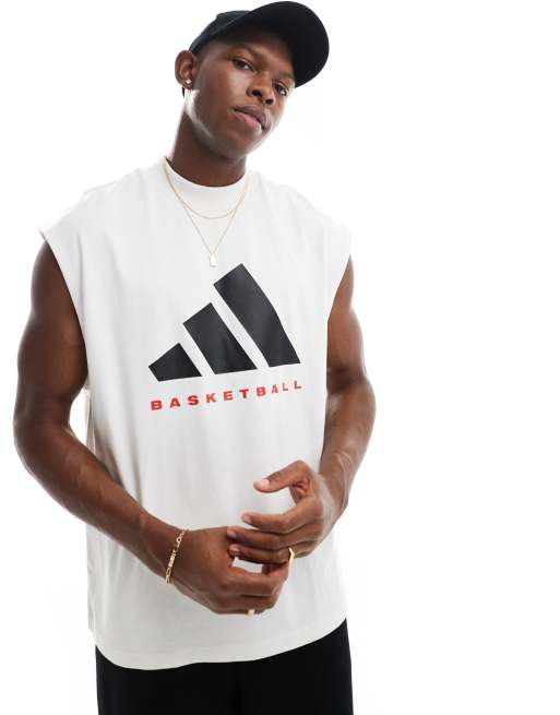 adidas Basketball - Hvid/sort/rød T-shirt uden ærmer