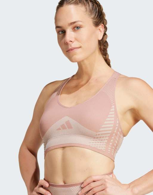 adidas Performance - Aeroknit - Lerfarvet sports-bh med let støtte og gråbrune detaljer