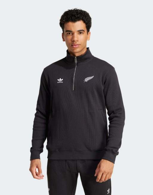 adidas Performance - All Blacks Essentials - Sort sweatshirt med halv lynlås og vaffeltekstur