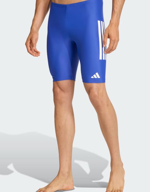 adidas Performance - Blå 8-tommers badeshorts med 3 hvide striber