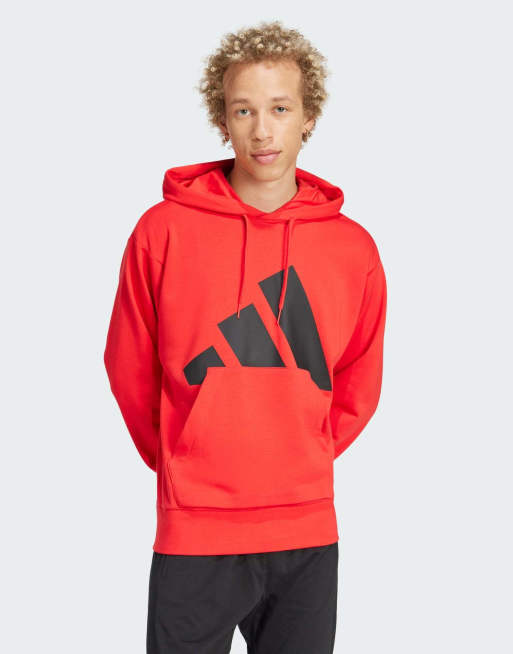 adidas Performance - Essentials - Rubinrød/sort hættetrøje i french terry med stort logo