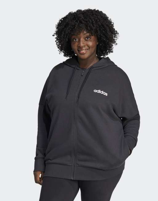 adidas Performance - Essentials - Sort hættetrøje med frotté-for, lynlås og hvidt logoprint