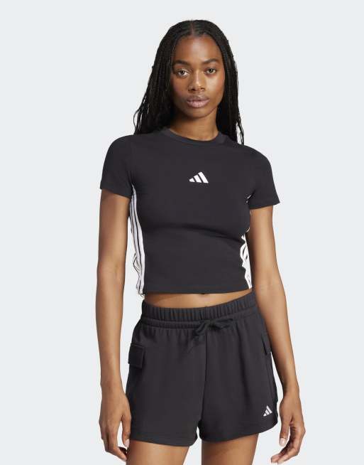 adidas Performance - Essentials - Sort smal baby-T-shirt med 3 hvide striber